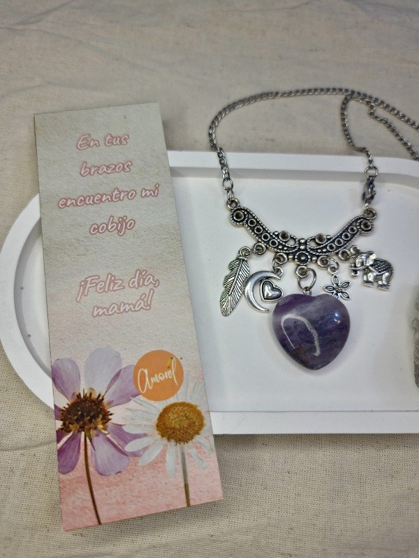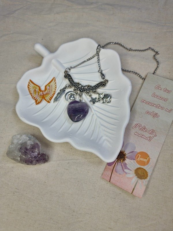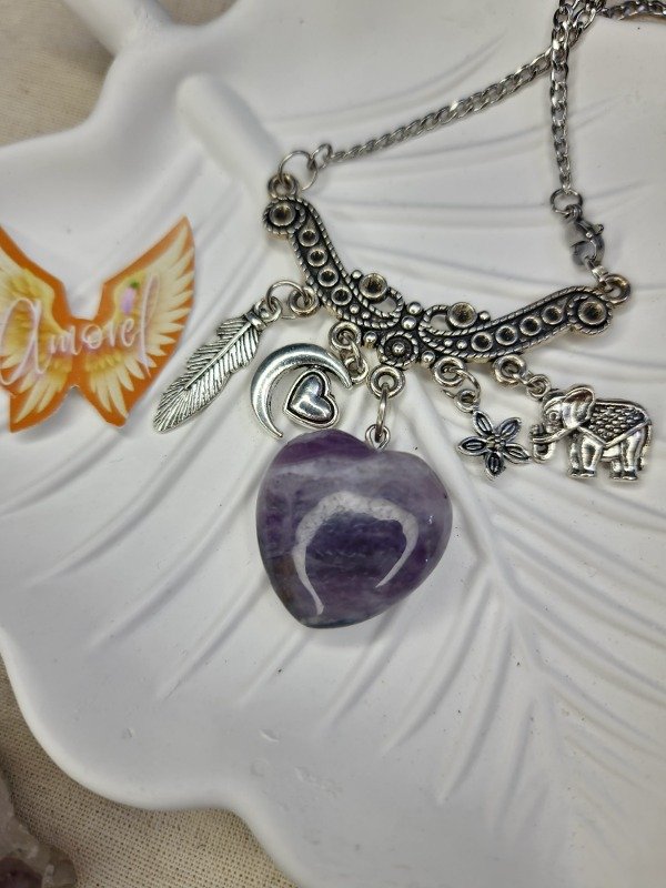Collar con cadena de acero ✨️ accesorios de zamak 💫 y Corazón de Amatista 💜